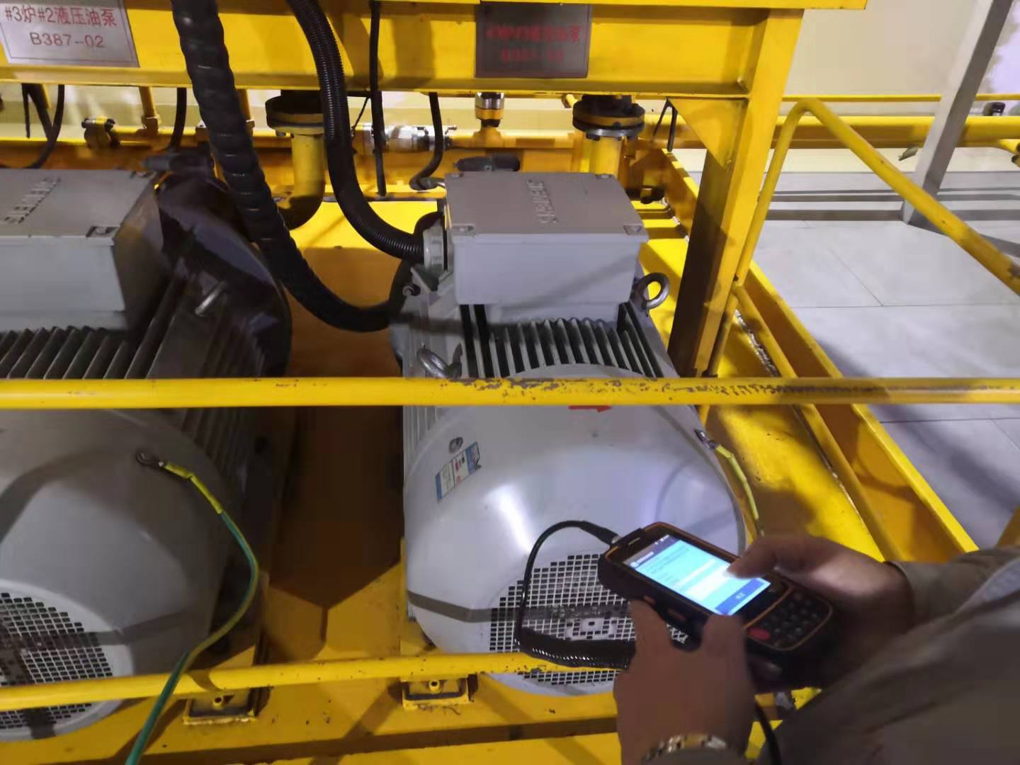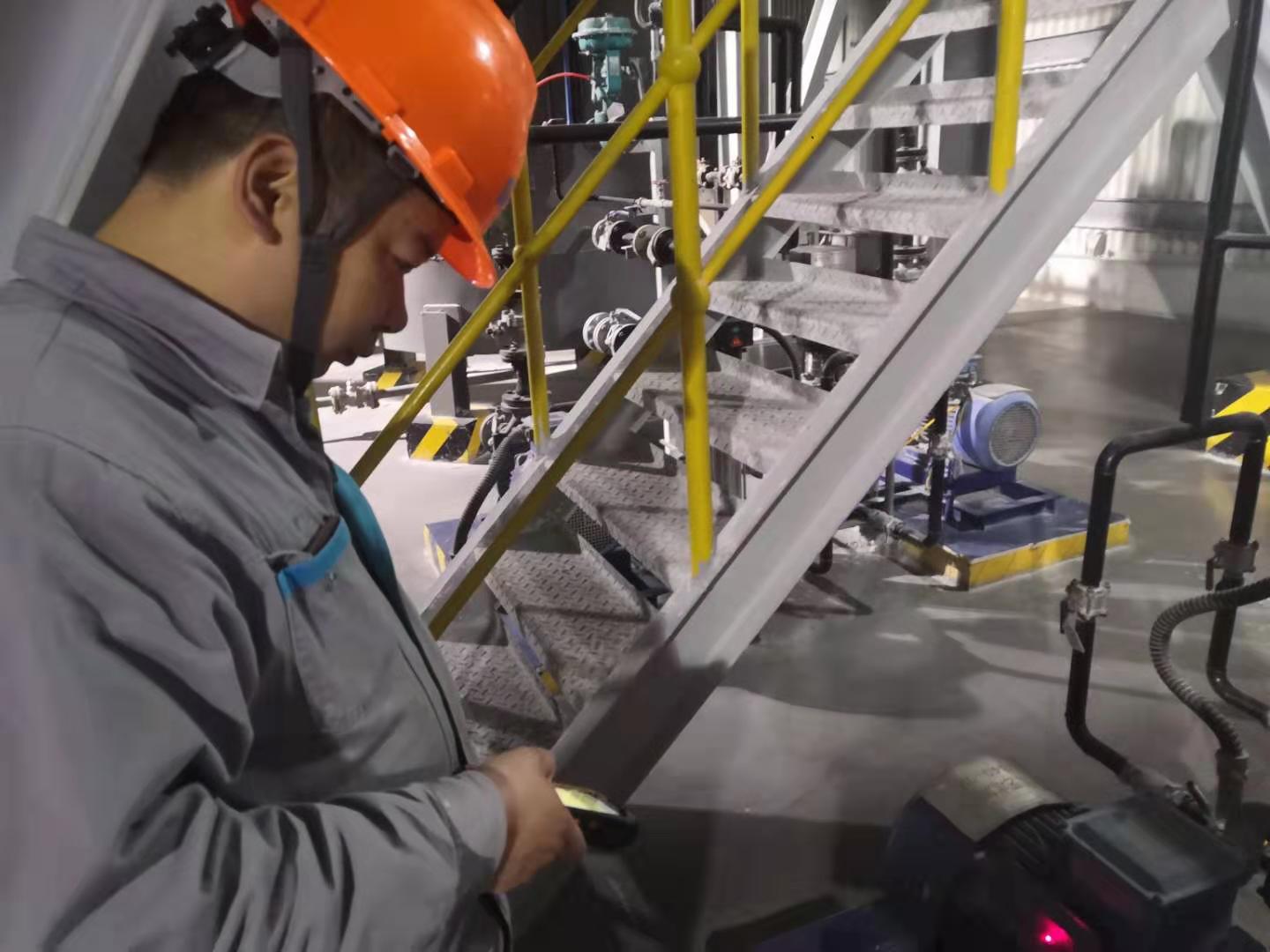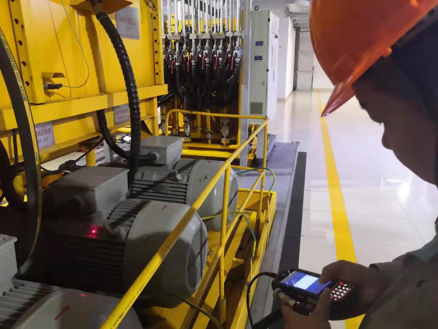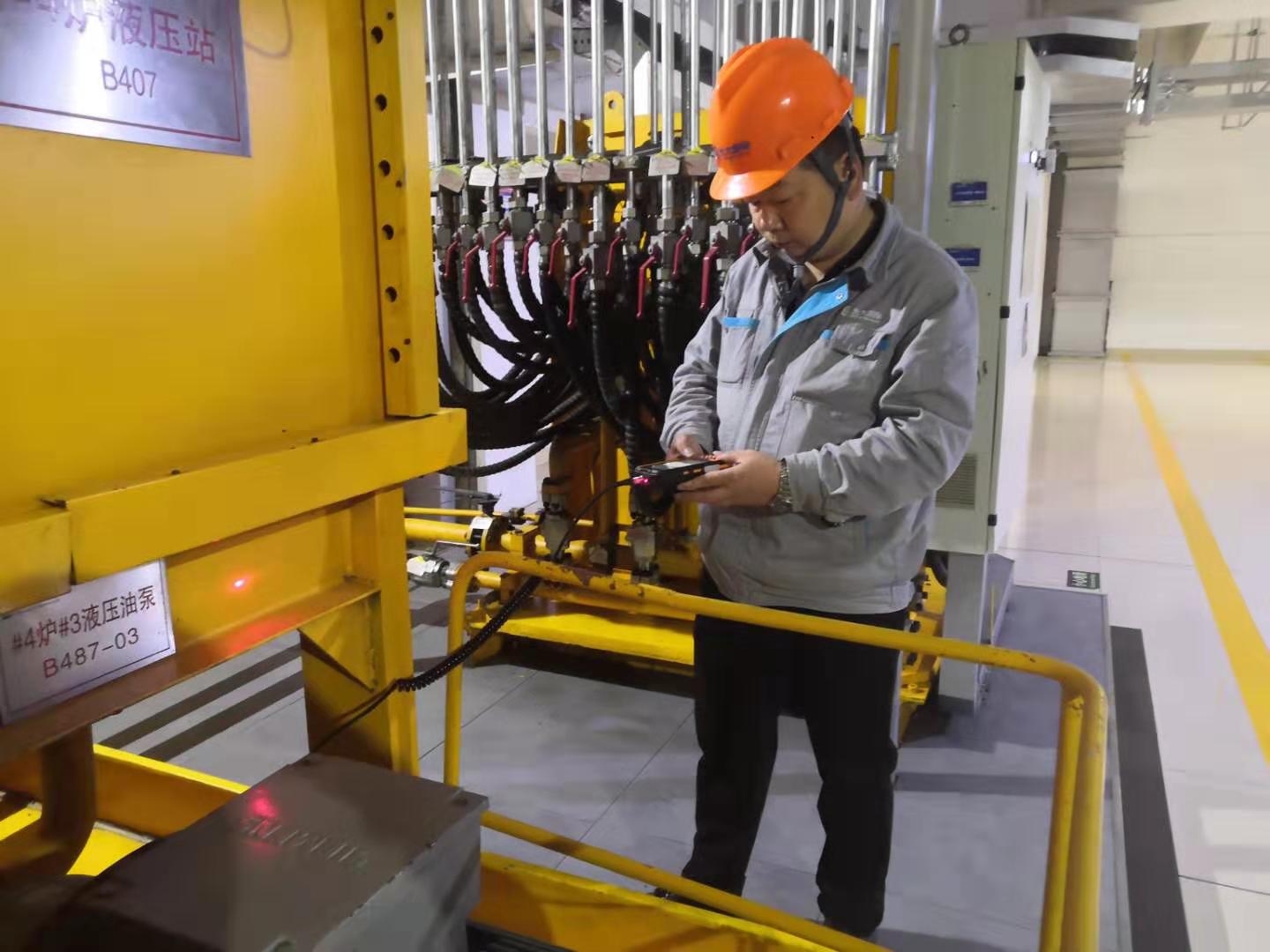 点检员,正在使用正朝科技的zc4000.点检仪进行数据采集、分析。